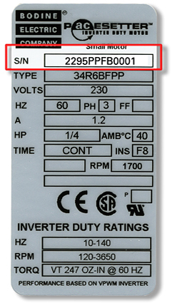 Your serial number is printed on the nameplate affixed to your Bodine product. The actual location of the nameplate may vary depending on the product.